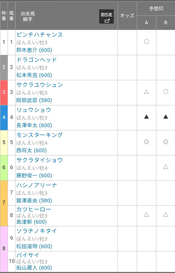 馬柱で過去の成績も見ることが出来るので、簡単な予想ならこれだけで出来ます。