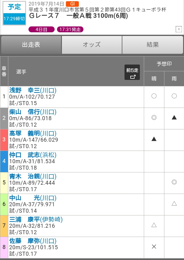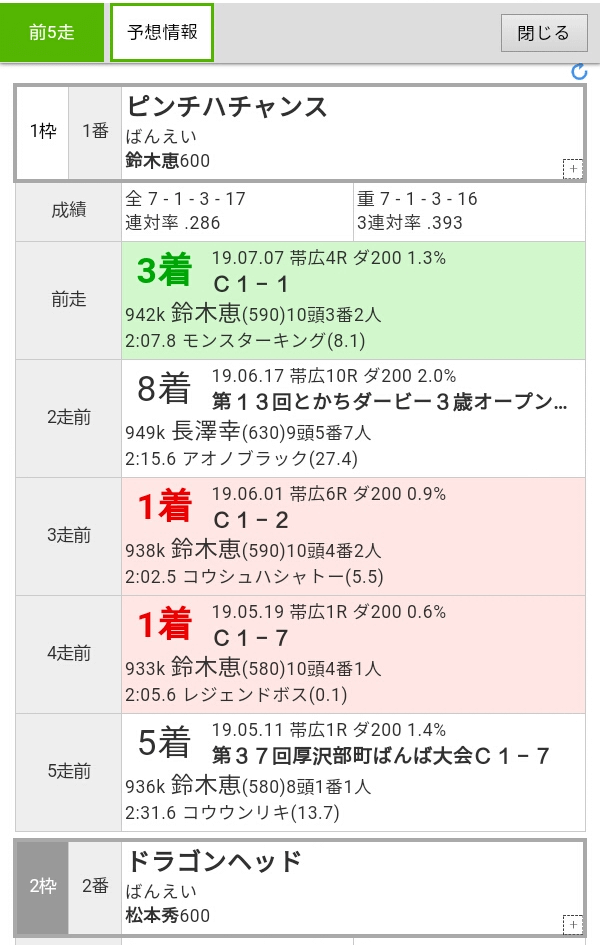 前5走の成績も見ることが出来るので参考にして予想することが出来ます。